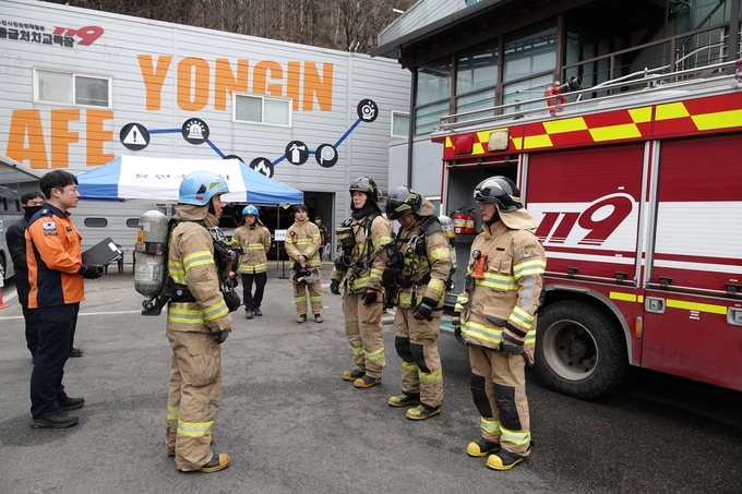 용인소방서 대원들이 화재진압 대응 전술 훈련을 하고 있다. (용인소방서 제공)