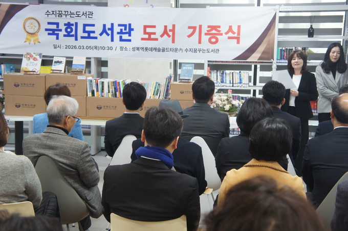 이날 행사는 국회도서관이 지역 주민들의 정서 함양과 독서문화 진흥을 위해 마련한 자리다. 국회도서관은 수지꿈꾸는도서관과 동천도서관에 각각 350권씩, 총 700권의 도서를 기증했다.