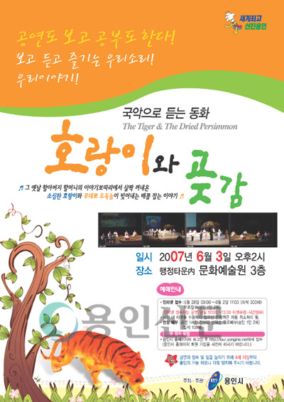 5월 가정의 달을 맞아 우리의 전래동화를 국악으로 표현함으로써 어린이들에게 우리의 것을 느끼게 하기 위해 펼쳐지는 이번 공연은 소심한 호랑이와 무대뽀 도둑놈이 등장해 배꼽잡는 이야기를 국악과 함께 들려줄 예정이다.