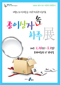 어린이들의 감수성과 창의성 개발, 신장시키고자 열리는 이번 ‘종이상자 속 하루 전’ 전시는 어린이들의 기호를 고려, 아름답고 친근한 느낌의 공간으로 조성해 그 안에서 어린이들이 자유롭게 미술의 미적원리와 조형탐구를 스스로 할 수 있도록 재활용품을 통한 작품들을 체험할 수 있는 등 자발적인 감상을 할 수 있게 마련됐다.