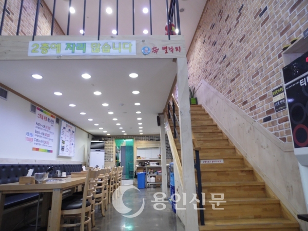 | ▲ 1층 홀과 더 많은 자리가 있는 2층 홀로 올라가는 계단 | ||