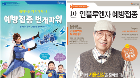 | ▲ 좌: 번개맨 활용 어린이 완전접종 응원캠페인, 우: 신구씨 재능기부로 실시한 어르신 예방접종 캠페인 | ||
