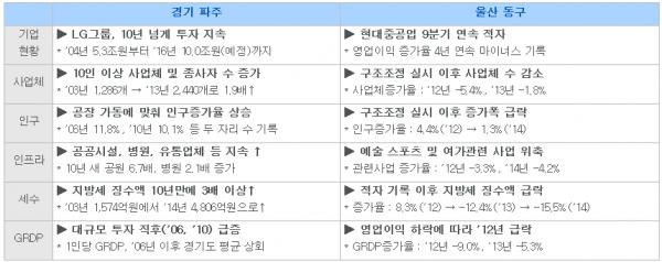 [용인신문]전경련은 지역경제 5대 지표 분석을 통해 지역에 자리잡은 대표기업의 투자가 지역경제에 큰 영향을 미친다는 주장을 제기하였다. 전경련은 이를 뒷받침하기 위해 경기 파주와 울산 동구를 분석대상 지역으로 선정하고, 각 지역의 사업체 수·인구 수·인프라 등 주요 경제지표의 변화를 비교 분석했다.