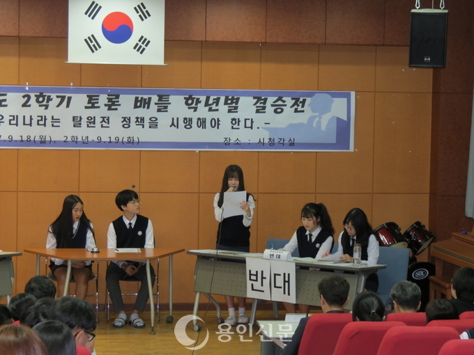 우리나라는 탈원전 정책을 시행해야 한다는 논제로 12일~14일까지 239명의 학생이 학급별 8팀으로 구성돼 예선을 치렀으며 통과한 반별 대표팀은 18일~19일까지 학년별 결승전에 출전했다. 이들은 심사를 거쳐 우수팀 4팀과 베스트스피커가 학급별로 1명 선정됐다.