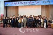 ▲ 용인문학회 창립 20주년을 맞아 지난 18일 용인시청 컨벤션홀에서 정찬민 시장과 김윤배 시인을 비롯한 회원과 축하객들이 참석한 가운데 20주년 기념식을 개최했다 초대회장 지낸 김종경 시인 등 참석자들 남다른 감회 용인지역 문학단체의 효시임은 물론 용인 문화예술의 미명기를 제치고 문화예술 발전의 여명기를 개척한 용인문학회. 용인문학회(회장 안영선)가 창립 20주년을 맞아 지난 18일 용인시청 컨벤션홀에서 정찬민 시장과 김윤배 시인을 비롯한 회원과 축하객들이 참석한 가운데 20주년 기념식을 개최했다. 봉후종 시인이 전체 진행을 맡은 이날 행사는 임이 오시는지, 10월의 어느 멋진 날 등 Flute 연주를 보여준 식전공연과 함께 1부 기념식을 마치고 2부에는 문학회 소개와 20주년 축하인터뷰가 담긴 영상을 시청했다. 특히 이날 용인문학회를 창립시킨 장본인으로 초대 회장을 지낸 김종경 시인(용인문학회 편집주간)의 감회는 남달랐다. 문학회 회원모집부터 공간 마련까지 동분서주해서 탄생시킨 용인문학회는 어쩌면 그의 분신과도 같이 언제나 몸과 마음이 먼저가고 함께 하는 연인과도 같은 단체다. 이날 김종경 편집주간의 회고사는 참석자들의 마음을 울렸다. 초창기의 풋풋했