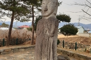 용인미평리약사여래입상(龍仁彌坪里藥師如來立像) : 경기도문화재자료 제44호. 경기도 용인시 처인구 원삼면 미평로 81번길 58-16 “병 치유 기원하면 약을 내려준다”… 긴 세월 동고동락 [용인신문] 비티에스, 영화 기생충 등 문화 산업의 위력을 실감하는 요즘, 각 지역마다 지역을 소재로 한 콘텐츠 개발에 관심이 높아지고 있다. 굴뚝 없는 산업으로 각광 받고 있는 문화산업은 삶의 터전에서 비롯되는 실로 다양한 자원을 바탕으로 하고 있다. 특히 용인은 문화유산의 보고라고 할 정도로 문화유산이 많은 지역이다. 상상력과 창의력이 가미된 콘텐츠가 탄생하기를 기대하면서 연재를 시작한다. <편집자주> 코로나19가 우리나라에 처음 착륙한 지 막 1년이 됐다. 여전히 온 국민이 바이러스와의 전쟁 한 복판에 서 있는 요즘, 중생의 신체적 질병과 정신적 괴로움을 약사여래입상에 빌어 소멸시킬 수 있다면 얼마나 좋을까. 원삼면 미평리 마을회관 뒤편으로 돌아가면 고려시대 불상인 용인미평리약사여래입상이 밭 주변에 우뚝하게 서있다. 이 마을은 미륵불이 서있다고 하여 ‘미륵뜰’로 불리고 있다. 마을에서는 이 약사여래입상에게 병을 치유해 달라고 기원하면 약을 내려준다고 하여 오랜